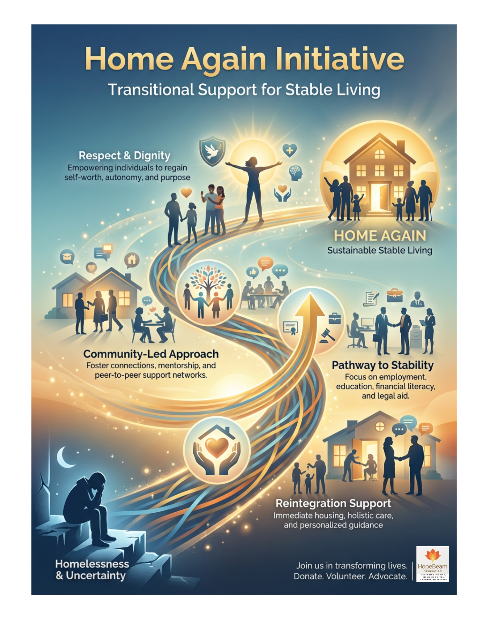 At HopeBeam Foundation, we provide more than shelter—offering hope, dignity, and a fresh start. We support homeless individuals, at-risk youth, and marginalized communities facing poverty and exclusion.